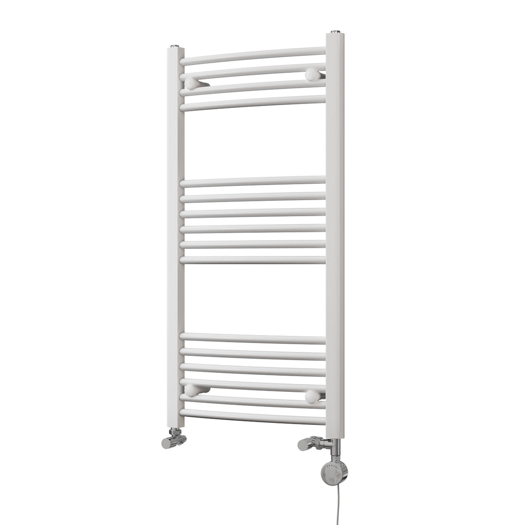 Zennor - White Dual Fuel Towel Rail H1000mm x W500mm Thermostatic - Curved
