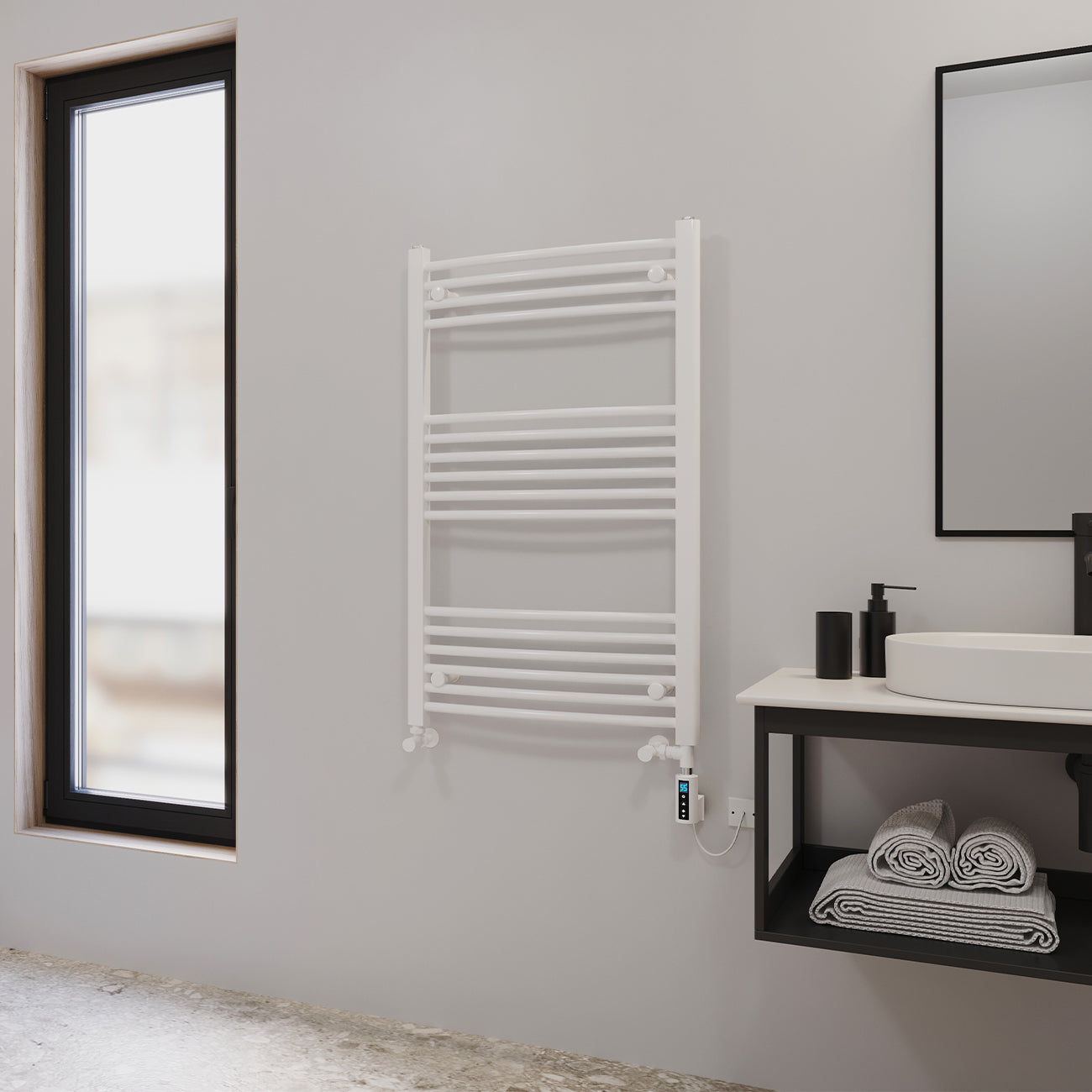 Zennor - White Dual Fuel Towel Rail H1000mm x W600mm Thermostatic WIFI - Curved