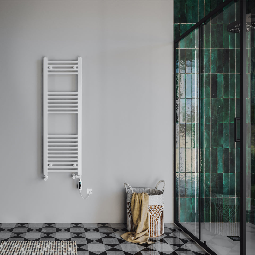 Zennor - White Dual Fuel Towel Rail H1200mm x W400mm Thermostatic WIFI - Straight