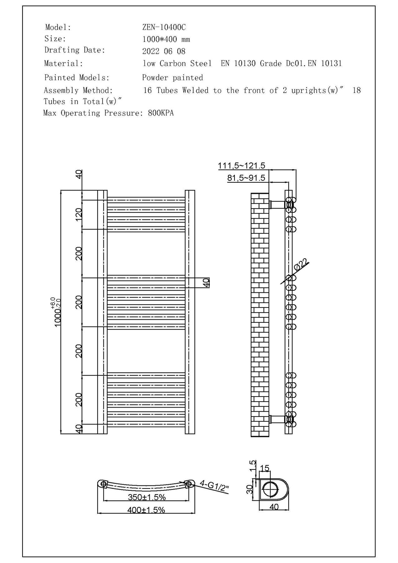 Product Assurances: UKCA Marked, BSEN442 Certified,15 Years (Towel Rail), 2 Year (Element)