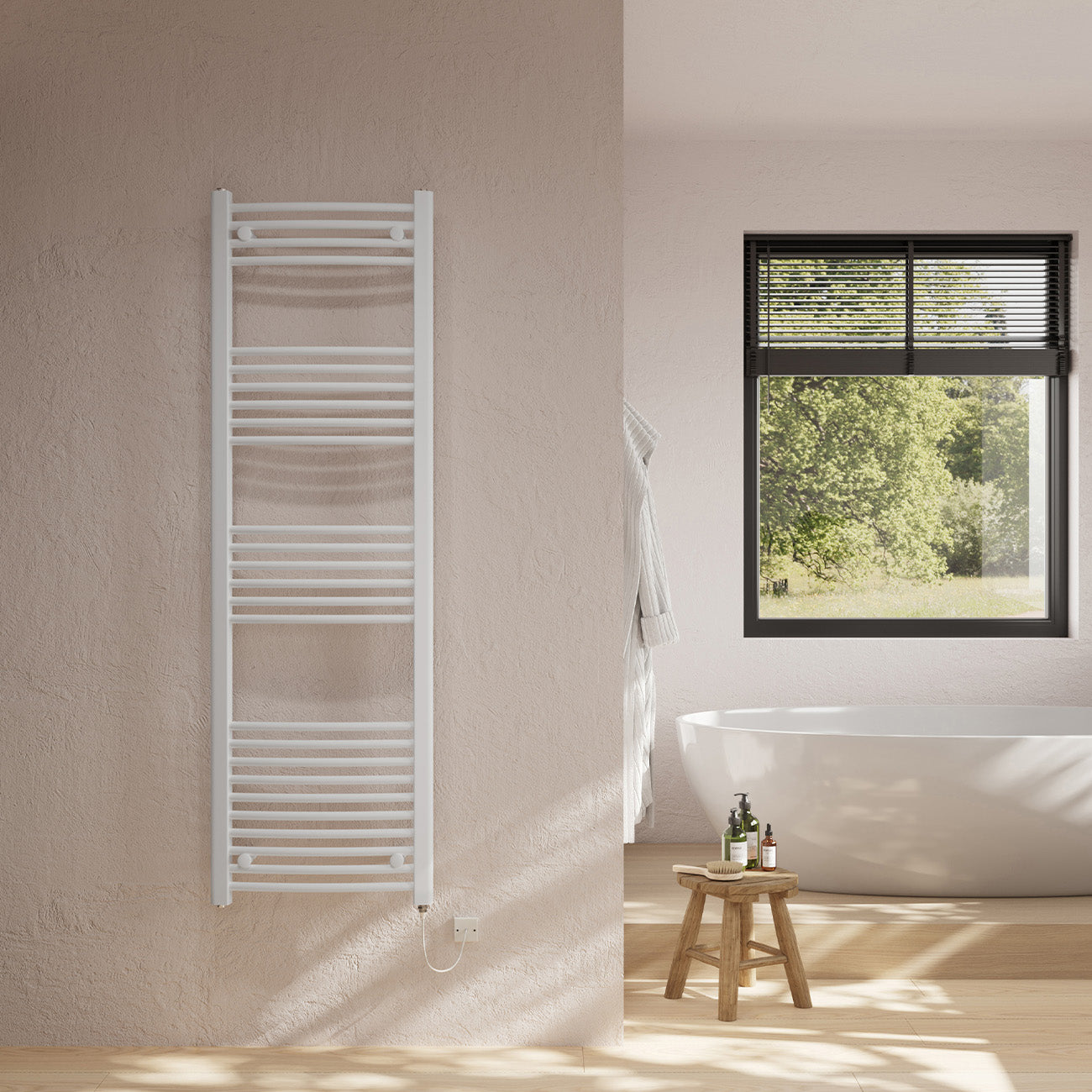 Zennor - White Electric Towel Rail H1600mm x W500mm Curved 600w Standard