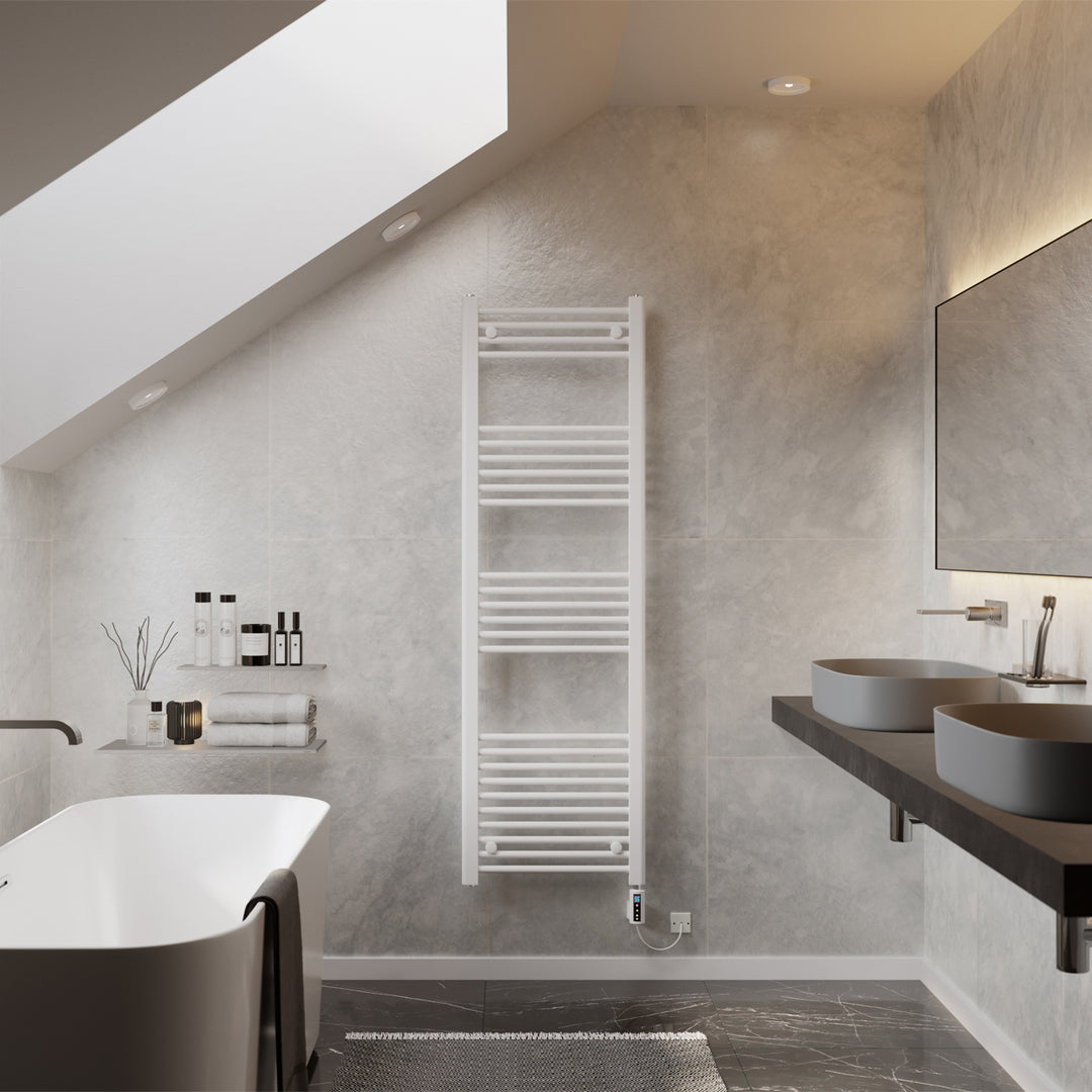Zennor - White Electric Towel Rail H1600mm x W500mm Straight 600w Thermostatic WIFI