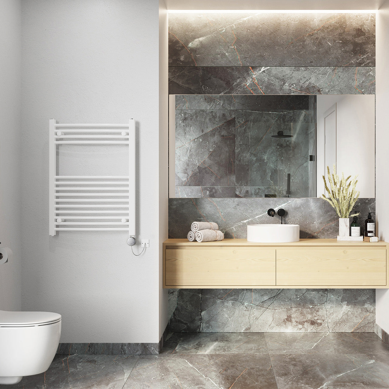 Zennor - White Electric Towel Rail H800mm x W600mm Curved 400w Thermostatic